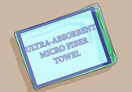 Dry with an ultra-absorbent towel. A lot of towels can rough up the shaft of the hair, leaving it frizzy and damaged. You can skip any sort of towel and use your hands to gently wring out the excess water in your hair. If you want to speed up the drying process, consider buying a ultra-absorbent, microfiber towel that will reduce friction on your fragile hair. If you don’t have a good towel handy, you can even use a t-shirt to soak up the excess water.