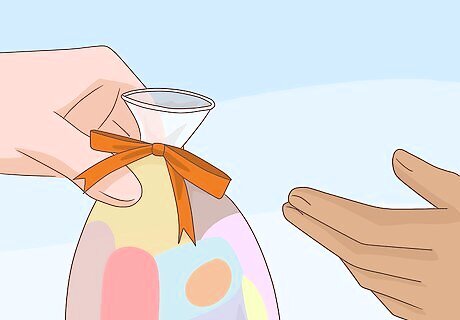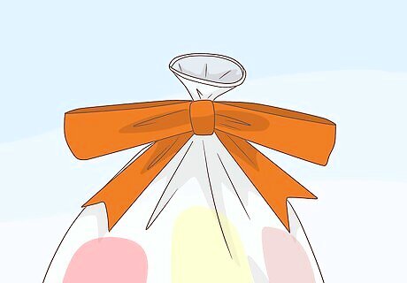 Tie the gloves. Wrap an orange ribbon around the opening, like a balloon.