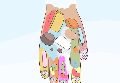 Add "fingernails". Drop a wrapped round candy, preferably a Hersey's Kiss or miniature Reese's cup into each finger. If you are adding "bigger" candies, such as mini-sized wrapped chocolates, use Smarties candies for the fingers and then fill the palms with the treats.