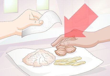 Purchase a variety of foods. You can make a hermit crab snack from a mix of unsalted nuts, whole grains, unsweetened dried fruits, and seeds. You may also want to include nutritional yeast for added B vitamins. You only need a little bit of each item (1/4 cup or less). Nuts: pistachios, walnuts, or almonds. Grains: oats, wheat bran, wild rice, or amaranth. Dried fruits: mango, goji berries, pineapple, coconut, or raisins. Seeds: pumpkin, chia, or sesame. Choosing unsalted and unsweetened varieties is very important because table salt and processed sugar can be harmful to your crab.