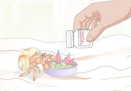 Try adding spirulina powder. Spirulina powder is a dense super-food powder made from blue-green algae. This powder can be added to your crab’s food to supplement him with amino acids, protein, iron, and vitamins B, C, D and E. Spirulina powder is available at any health food store.