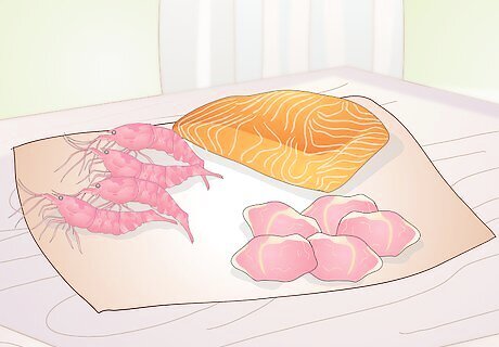 Add some form of protein. In addition to fruit and veggies, it is crucial for hermit crabs to have some form of protein everyday. Your crab may enjoy cooked lean beef, chicken, salmon, or shrimp. Or you can add dried plankton, krill or any other dried sea creatures (available at most pet stores). Be sure the protein you provide has not been seasoned with spices or table salt.