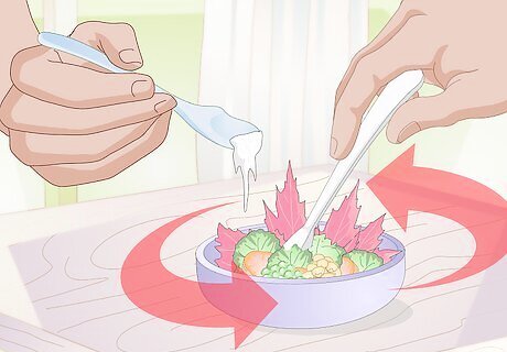 Mix everything together. Combine a ¼ cup of chopped fruits and veggies with ¼ cup of protein. Add a few leaves or bark (if possible), and 1 tsp. of sea salt. Mix everything together. Serve 1/3 of this mix to your hermit crab each night and refrigerate the rest. Note that sea salt is different from conventional table salt. Sea salt contains natural, unrefined minerals that are healthy for your crab, whereas table salt does not.