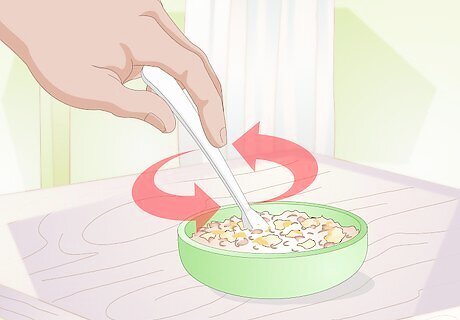 Mix everything together. Take all the dry foods you have purchased or found in your pantry, and mix them all together. If using granola or whole grain crackers, crumble them up or use crumbs from the bottom of the bag. Since these foods are not considered perishable, you can place some of this food in the “crabitat” and allow it stay for 3-4 days, or until your hermit crab finishes it.
