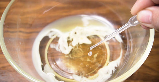 Mix the vitamin E oil and essential oil into your melted butter and wax. Pour about ½ tsp (2.5 mL) of vitamin E-oil into your pan, and then mix in about 10-15 drops of an essential oil of your choice. Great options include lemon, lavender, or orange. Use a spoon to blend the ingredients together. The essential oils make your cream smell delightful, and the vitamin E oil helps nourish your skin. Some essential oils are highly concentrated, so you only need a drop or 2 if this is the case. If applied on its own, you could have an adverse reaction in the sunlight. However, the carrier oil helps dilute the oil.