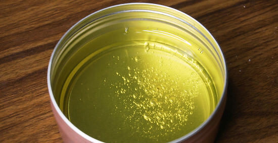 Remove the pan from the heat after the liquid is melted. Your butter and wax mixture is ready once it is completely liquified. Stir it up with your spoon to ensure there are no lumps or chunks remaining, then turn off the heat.