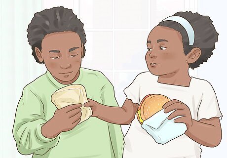 Share food at lunch. Check out what each of you is enjoying for lunch and share it around with your friends. Bring special food to share with friends on birthdays.