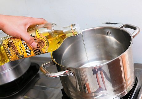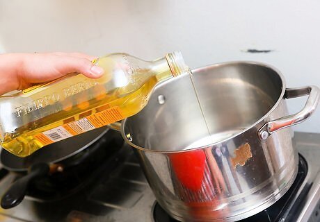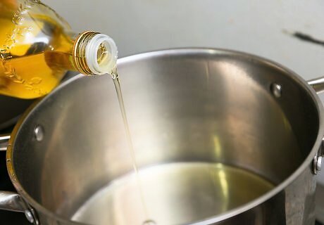 Heat 1/3 cup of vegetable oil in a pan. Wait until the oil is bubbling a bit to proceed.