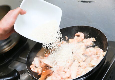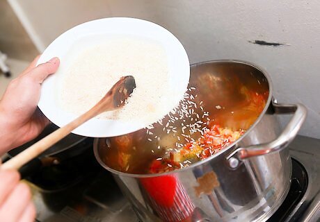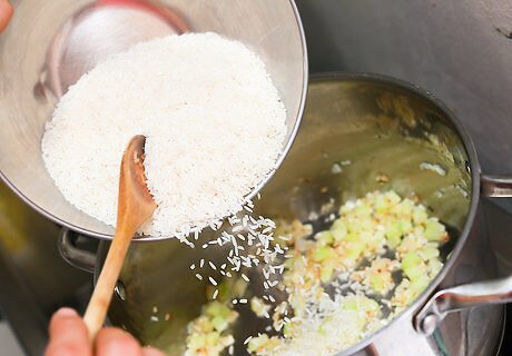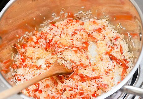 Stir in 1 cup of long grain rice. Cook the rice for about 2–3 minutes, until it's slightly browned.