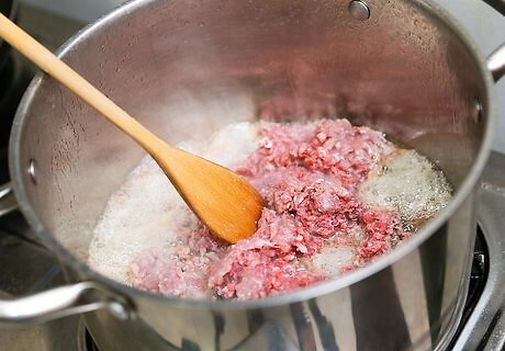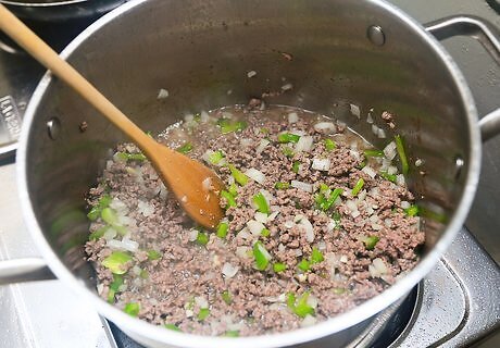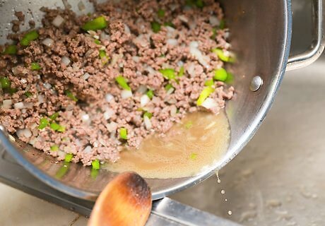 Cook the beef. Continue to cook the beef and veggies until the beef is no longer pink.