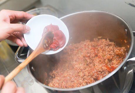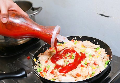 Stir in 2 tablespoon (29.6 ml). of tomato paste. Cook the Spanish rice until the paste is heated.