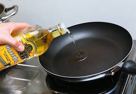 Heat 2 tbs. of olive oil in a skillet. Heat the oil for at least one minute, until it begins to bubble.