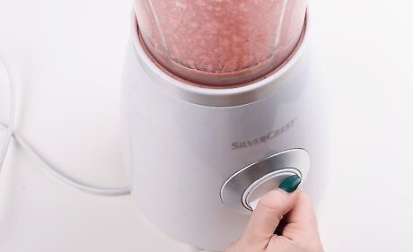 Add ice and crush the mixture. Fill your blender halfway full of ice. Turn on the blender so that you completely crush your ice. If you prefer a smoother blended margarita, you could also use a shaved ice machine. You can also purchase crushed ice to use, although it may be chunkier than ice you crush yourself.