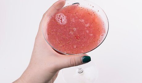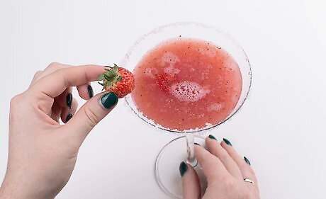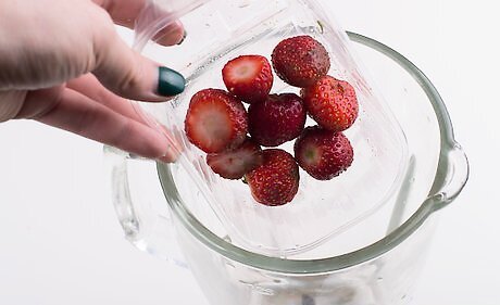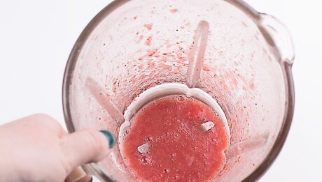 Make a strawberry puree. Wash 1 1/4 cups of strawberries and cut off the stems. Put them in a blender with 2 tablespoons of your cold simple syrup. Blend the berries and syrup until you have a smooth strawberry puree. If you'd like to leave a few chunks of strawberry for your drinks, simply pulse the berries and syrup until you have the consistency you'd like.