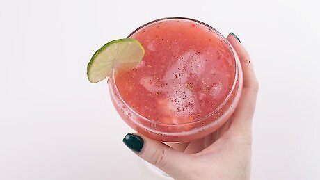 Make a virgin strawberry margarita. If you'll be serving drinks to minors or those who can't drink alcohol, you may want to make a batch of non-alcoholic margaritas. Simply leave out the alcohol. You may need to adjust the consistency of the blended margarita by adding more lime juice or strawberry puree. You can still make salt or sugar rims for serving virgin margaritas.