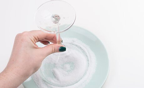Try a sweet rim. If you don't want the salty-sweet taste of a margarita served with a salty rim, you may want to make a sugar rim. Keep in mind that this will add to the overall sweetness of your drink. To make a sugar rim, have two small rimmed plates ready. Pour a little water onto the bottom of one plate and add enough sugar to cover the bottom of the other plate. Dip the rims of your margarita glasses in the water and immediately dip them into the sugar. Different sugars will give different textures. Try demerara sugar if you want a lot of crunch and a rich flavor. For a light crunch, use granulated sugar. You probably don't want to use powdered sugar since it may dissolve too quickly.