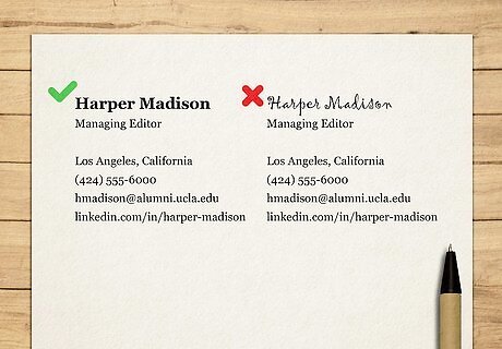 Choose a font type and size that looks professional. Go for clear, legible fonts in the standard CV typefaces (Arial, Bookman Old Style, Helvetica, Tahoma, or Times New Roman). Use an 11 to 12 point font size and single spacing. Use a 16 point font size for your name and a 14 point font size for section headers.
