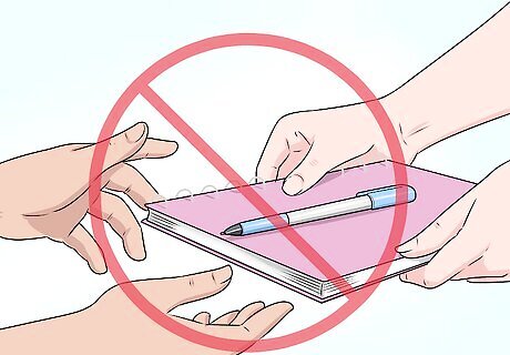 Avoid lending your supplies. Although your friends and schoolmates might ask to borrow supplies, sharing your supplies will lessen the amount of time they will last. Instead, tell your friends that you don’t have enough to share. Be polite. For instance, say “Sorry, I don’t really have much to spare.” Buy certain supplies to share. For example, buy a cheap pack of notebook paper to share with your friends. In addition, buy some inexpensive pens or pencils to lend to friends if they need one. This way, your quality supplies won’t get lost and will last longer.