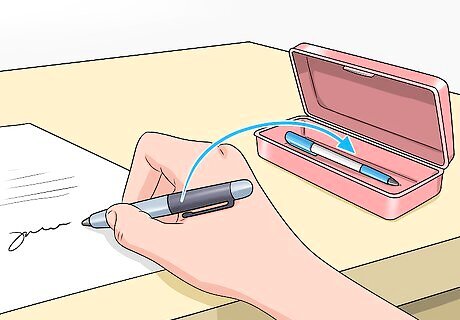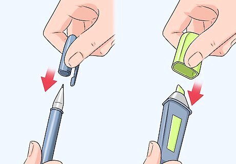 Replace tops on pens and markers. One of the biggest ways to ruin pens or markers is to leave tops off them. To avoid this, make sure to put tops back on pens and markers whenever you’re done with them. In addition, if you have a pushdown pen, make sure to push it back down when you’re done.