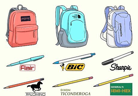 Buy brands that are known for making quality products. While it might be tempting to buy cheaper school supplies to save money, you should focus on quality when purchasing items. Some quality brands and their products include: JanSport, North Face, and Patagonia backpacks. These backpacks could potentially last you the entire time you are in school. Flair, Bic, and Sharpie pens. Palomino, Dixon Ticonderoga, and General's Semi-Hex pencils.