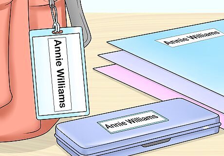Put your name on things. Use a label maker, masking tape, or other ways to put your name on your school supplies. If you don’t want to put your name on things, you could simply color code or make tags for important school supplies. This will help you recognize your school supplies if you lose them. Consider putting your name or a tag on the following: Pencil bags Your backpack Folders
