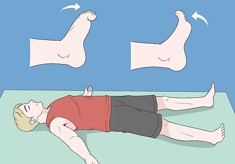 Perform a progressive muscle relaxation exercise. Progressive muscle relaxation is when you systematically tense and release the muscles in your body going from the tips of your toes to the top of your head. Tense each muscle group for 5 to 10 seconds and then release it. For example, start by tensing the muscles in your toes, such as by curling them under. Then, count to 10 while you hold the tension, and release. Move on to the muscle in your feet next, then your calves, thighs, buttocks, abdomen, hands, arms, and face. You may find it more relaxing to do this exercise while lying down. Lie on your bed, a sofa, or a comfortable spot on the floor.