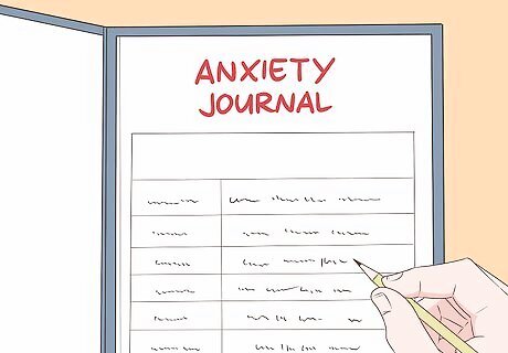 Keep an anxiety journal and note what triggers your anxiety. There might be certain things that trigger your anxiety more so than others. These may range from minor annoyances to major life events, but keeping track of anything that sets off your anxiety can help you to become more aware of your triggers. Notice when you’re feeling anxious and what is happening or what preceded the anxiety and make a note of it. Review your journal after a month to look for patterns. For example, if you notice that you feel anxious every time you have to ride the bus, then this may be one of your triggers. Or, if you get anxious when you are in a large group of people, then this may be a trigger. Tip: You might not be able to avoid all of your triggers, but there are strategies that might help. For example, if you get anxious when you have to ride the bus, perhaps listening to some soothing music during your commute might help you to relax. Or, if large groups make you anxious, try using deep breathing to calm yourself when you’re stuck in a crowd.