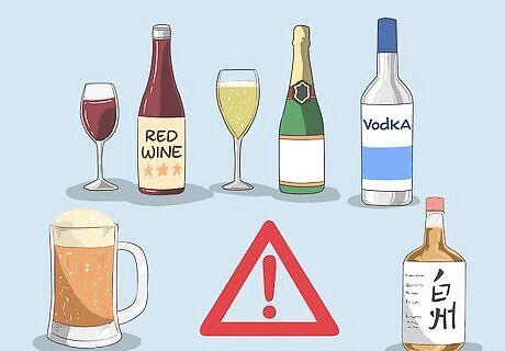 Limit or avoid alcohol to minimize the anxious after-effects. While it might seem like alcohol relaxes you, these effects are often short-lived and you may feel even more anxious once they wear off. If you suffer from anxiety, it’s best to avoid alcohol as much as possible. If you do drink, limit yourself to 1 drink per day if you’re a woman or 2 drinks per day if you’re a man. Try having a non-alcoholic cocktail when you go out with friends, such as tonic water with a twist of lime or club soda with a splash of cranberry juice.