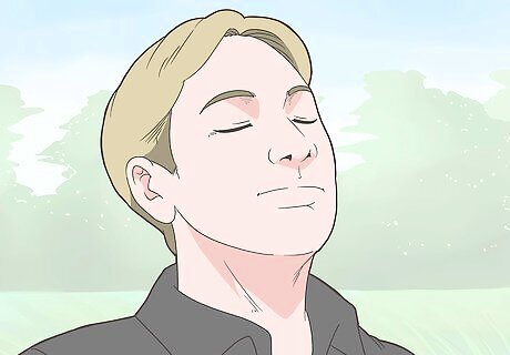Take deep breaths to calm yourself. Breathing deeply can promote a feeling of relaxation and calm almost instantly, so you may want to make this your go-to tool. Inhale slowly through your nose to the count of 4 and then hold it for 4 seconds. Then, slowly exhale though your mouth to the count of 4. Repeat this for 5 or more breaths to help yourself relax. You can practice deep breathing anytime and anywhere to experience a feeling of relaxation, so it’s a great tool to use.