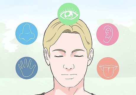 Practice mindfulness as you go through your everyday activities. Being mindful is when you consciously notice the sensations of your surroundings rather than going through the motions quickly and mindlessly. Focus on your 5 senses whenever you need to calm yourself, which includes sight, sound, smell, taste, and touch. You can practice mindfulness while you do your daily routine, such as while you’re getting dressed, eating a meal, or going for a walk. For example, practice mindfulness while brushing your teeth by noticing the smell and taste of the toothpaste, the feeling of the bristles against your teeth and gums, and sound of the toothbrush in your mouth.