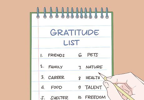 Make a list of everything you feel grateful for to change your focus. Making a list of everything you feel grateful for may help you to feel less anxious and happier in general. Try writing down 10 things that you feel grateful for whenever anxiety strikes, or do this as a daily exercise whether or not you feel anxious. You can include anything that you feel grateful for on your list. For example, you might be grateful for a roof over your head, access to the internet, your cuddly cat, or a good cup of coffee. Whatever makes you feel grateful, write it down! Review your list after you finish it and return to it any time during the day when you need a reminder of all the good things in your life.