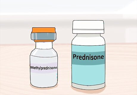 Agree to new treatments. If you are having a severe flare, then you may need treatment with medication. It is a severe flare if the symptoms are interfering with your daily life or your ability to function safely. This type of symptom flare could include loss of vision, loss of balance, tingling in your in your hands and feet, incontinence, memory loss, depression, extreme weakness, or an inability to move. Treatment for this type of flare-up usually includes a round of corticosteroids. A high dose of IV corticosteroids, sometimes followed up with a longer course of oral steroids, can help to eliminate inflammation in the central nervous system. Common corticosteroids that are used for flare-ups include methylprednisone and prednisone. There are other drugs used in managing remission-flare ups of MS such as disease-modifying/immunomodulating drugs which have been shown to greatly reduce relapses. However, it can take a few tries to find the drug that works best for the individual, and these drugs are available only by injection.