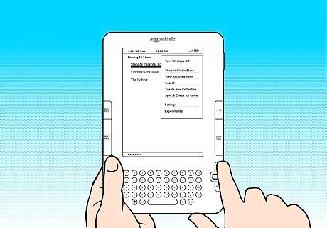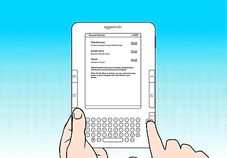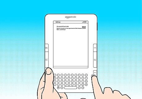 Turn off whatever of the features you don't want your child (or yourself) to use. This can include the Experimental Browser, ability to purchase from the Kindle Store or access a list of Archived Items. The last two are major sources of daily activities on a Kindle. Only turn these off as a last resort. Use the 5-way controller to move you up and down the list.