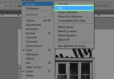 Click on Tile All Vertically. It's at the top of the menu. This enables you to view both images side-by-side.