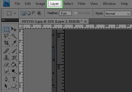 Click on Layer. It's near the left side of the menu bar at the top of the screen.