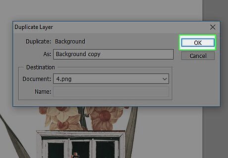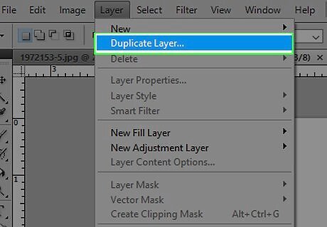 Click on Duplicate Layer…. It's near the top of the menu. Creating a duplicate preserves the original background image in case you make a mistake. Create a custom name for the layer or leave it as the default.