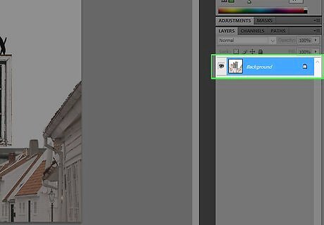 Click on the Background layer. It's in the "Layers" menu in the lower-right corner of the Photoshop window and is labeled "Background." If you don't see the "Layers" menu, click on Windows in the menu bar at the top of the screen, then click on Layers. The "Layers" menu window will appear in the lower-right corner of the photoshop window.Match Colors in Photoshop Step 6Bullet1.jpg