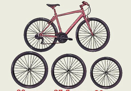 Get a frame built for bigger wheels for increased comfort and ease on hard trials. Bigger wheels are becoming more and more fashionable, but you cannot swap out smaller wheels if your frame is made for bigger ones. In general, you have three options for wheel size. 29 inch: These behemoth wheels are great at rolling over rocks and roots, have provide more grip to the trail. They carry momentum well downhill, letting your go faster, but they are harder to accelerate. 27.5 inch: A hybrid wheel, they have some of the speed of a classic 26" with the increased movement over rocks and roots found in a 29". 26 inch: The traditional wheel size, these are light and speedy wheels that still function well on the trail. Until 5-10 years ago, they were the standard mountain bike wheel.
