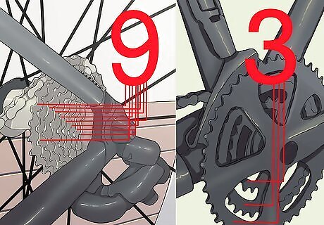Understand gears and gear ratios. Gearing may seem confusing, but you should remember that it comes down to two factors. First, more gears means more options when riding, allowing you to find the perfect resistance going up or down hills. Gears, however, add to the weight of the bike, which is not desirable if you are racer or mountain rider heading uphill a lot. The classic gearing for both road and mounting bikes is 3 gears in the front and 9 in the back, resulting in a 27 speed bike.' Compact cranks are smaller, lighter gears in the front, giving you only two big chainrings to get into but cutting down on weight.