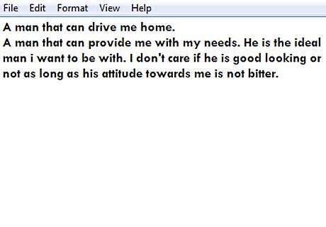 Show that you're smart enough to use the Queen's English properly. Intelligence is very attractive. An error-ridden profile is a real turn-off to smart men and women. If you don't know how to write, get some help from someone who knows the rules of grammar. This is a major point!