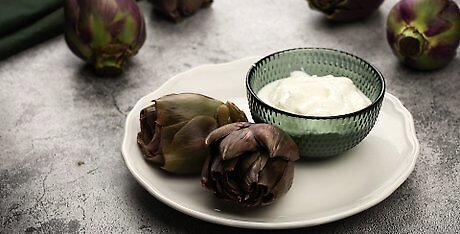 Eat your artichoke with dipping sauce. To eat an artichoke, you break off the leaves and eat them individually. Artichoke tastes great with dipping sauce. Things like aioli or mayonnaise go well with artichoke, but you can choose any dipping sauce you like to eat your artichoke.