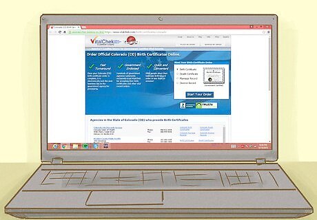 Order through VitalChek. VitalChek is endorsed by the Colorado Department of Public Health and Environment and other government agencies. Start the order by selecting birth certificate, and then selecting if you are ordering for yourself or someone else. The online process asks you a series of questions, such as the full legal name, city and state of birth, date of birth, parents' names, and reason. VitalChek charges an additional $10 fee after the initial fee of $17.75 for the certificate. You can also order online through other Colorado agencies, like the El Paso County Health Department, via VitalChek. This usually takes 2-4 days.