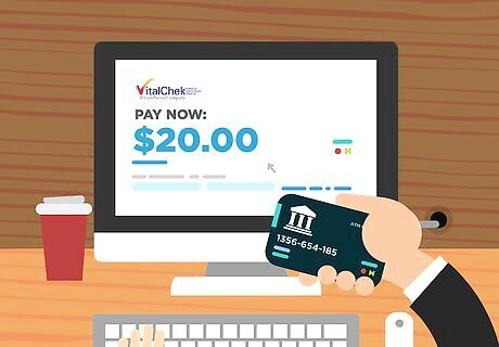 Pay for your birth certificate copies and VitalChek’s service fees. At the end of filing your request online, the VitalChek website will request your payment. VitalChek charges not only for the copy of the birth certificate, but also for its expedited services. VitalChek charges $20.00 for copies of Rhode Island birth certificates. VitalChek will also charge you $10.00 for processing and an additional $7.00 for expedited services. In addition, VitalChek will charge you an additional fee for whatever shipping method you choose. The price for that will also vary depending on how quickly you want the birth certificate copy. Vital Chek accepts Visa, Mastercard, Discover, and American Express.