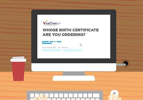 Access the VitalCheck website to complete your request. In order to apply for a birth certificate copy online, access the VitalChek website to begin and complete your application. The service has the advantage that you can use it any time you’re ready. VitalChek’s website for Rhode Island birth certificates is https://www.vitalchek.com/order_main.aspx?ProviderID=20666&state=ri&eventtype=birth. You can file your application 24 hours a day, 7 days a week.
