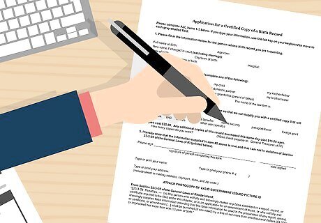 Prepare your documentation. You will need proper documentation to submit to the Office of Vital Records to ensure that there aren’t any delays in getting you the birth certificate by mail. You need to have a completed application form or letter of request for a copy of a Rhode Island birth certificate. If you are applying for a copy of your own birth certificate, you need to provide a copy of your official government photo ID. For example, you can provide your driver’s license, US military ID, or a passport. If you are applying for a copy of a birth certificate for another person, including for your child, you need government identification and any other legal documentation, such as a court order. If you do not have a government-issued ID, you can provide two documents with the name and current address of the applicant. For example, you can submit a utility bill, a car registration, a bank statement, or an income tax return.