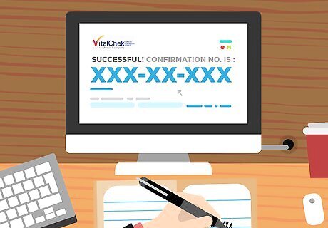 Note your confirmation number and wait for your birth certificate copy. After you’ve filed your application with Vital Chek and paid the relevant fees, you will receive a confirmation number by email. You should receive your birth certificate relatively quickly by using the online service. Make sure to note the confirmation number for the requested birth certificate in order to check up on the status or ask questions you may have. Vital Chek offers fast turnaround on birth certificate requests. The will file your application within one business day to government office and you should expect your copy in about a week. You can also check on the status of your application at https://www.vitalchek.com/order_status_signon.aspx with the order and pins that VitalChek provide you.