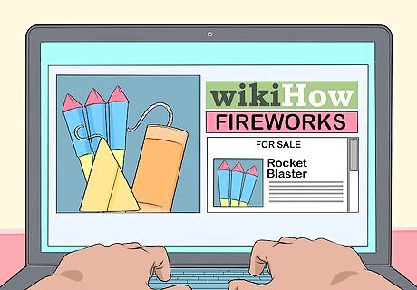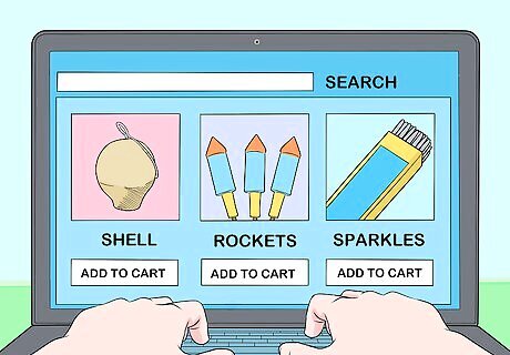 Shop online to find the largest selection. An internet search for “Buying fireworks online” will turn up pages of vendors with huge selections of consumer-class shells, rockets, Roman candles, sparklers, and more. If you already know the types of fireworks you want to display, or if you’re looking for hard-to-find fireworks, this is probably your best option. If you order fireworks online that are prohibited where you live, you will be held responsible, not the retailer. Fireworks have to be shipped by carrier trucks since they can't be sent through the mail, so your shipping costs may be slightly higher compared to ordering other goods online.