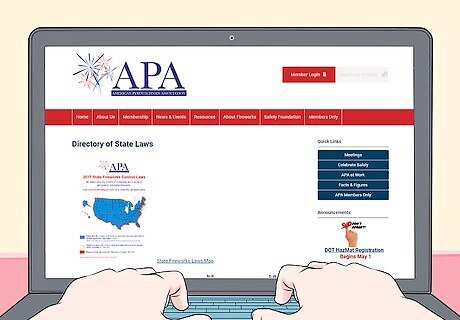 Check online to find the laws for your state and city. Just because fireworks are legal in your country doesn’t mean they are legal in your state or city. For information on state laws in the U.S., visit http://www.americanpyro.com/state-law-directory. For instance, residents of Delaware and Massachusetts are prohibited from using, possessing, or selling fireworks.