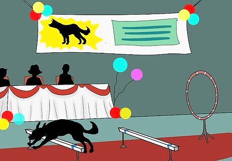 Include some dog agility options. Dog agility classes are often included at dog shows but usually as an interesting novelty. Owners are invited to let their dogs have a try-out at various challenges such as walking along planks, over hurdles or in and out of sticks etc. These competitions are usually just a bit of fun and an added attraction to your fundraising event.You may however like to consider inviting your local dog agility club. These clubs are often keen to demonstrate the skills of their pets and regularly feature in all sorts of summer fundraising events. A run-through of their routines can make a great attraction at your event.