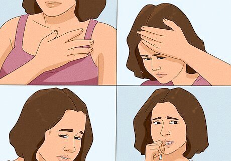 Understand symptoms of fear. Fears often manifest as phobias, which can include situations (fear of public speaking or raising your hand), animals (fear of snakes or spiders), blood, injections, etc. When you experience fear, physiological, mental, and emotional reactions occur, which can include: Racing heartbeat Difficulty breathing Feeling dizzy Sweating Overwhelming anxiety, panic Feeling pressured to do it Needing to escape Feeling detached Feeling like you may faint or die Feeling powerless to your fear, even if you know it’s irrational